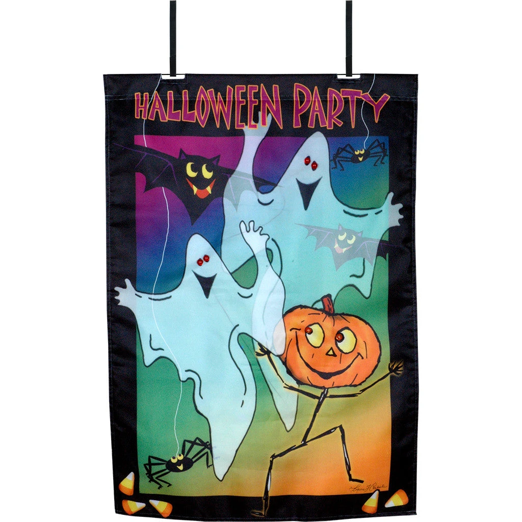 Boo! Hang one over your front door and see how the trick or treaters shriek with amazement and joy! A switch device is stored in the back pocet for three positions: light, voice, or both. A pair of metal door hangers are included in the packaging. Requires three AA batteries (not included).