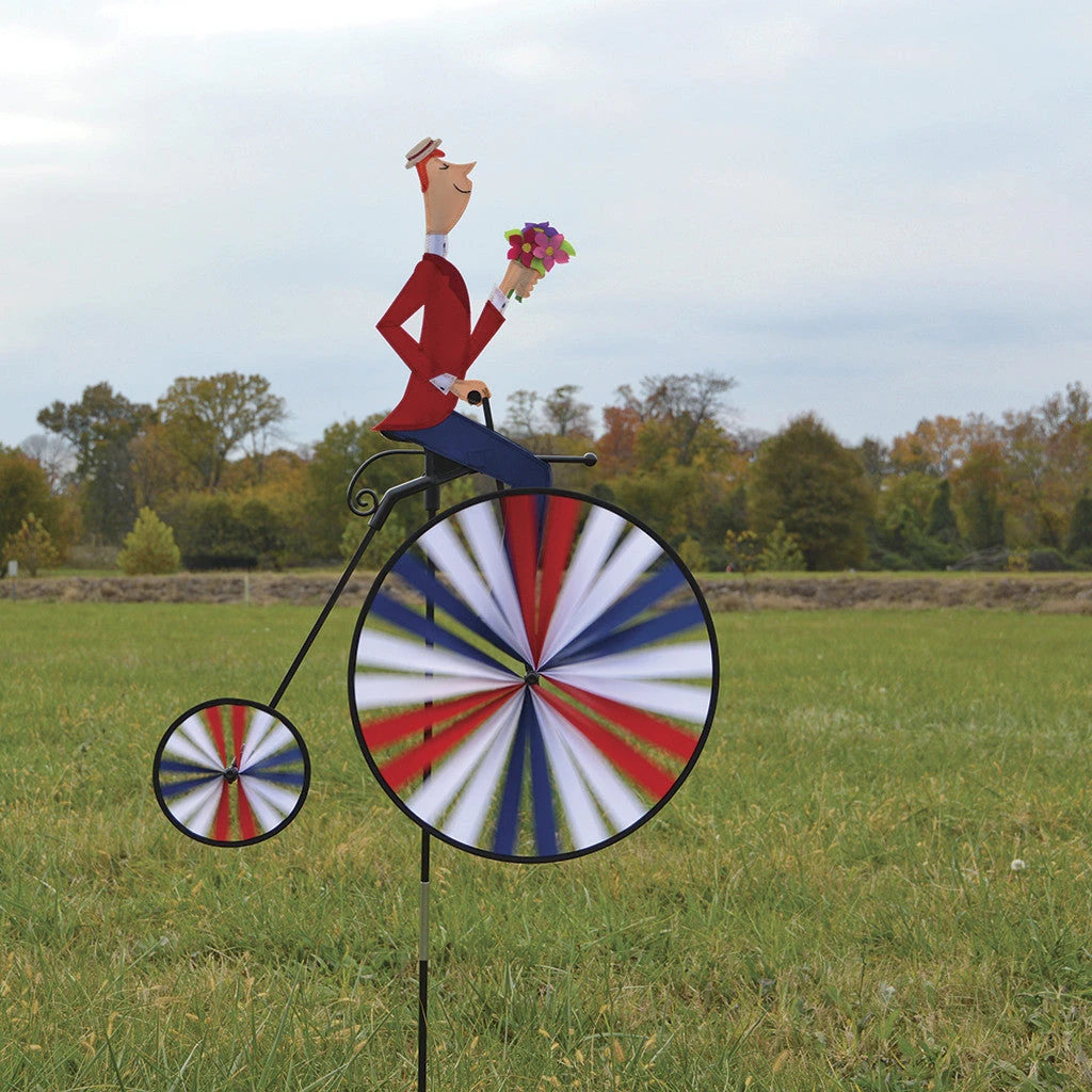 Also called a Penny-Farthing or Ordinary, your yard is going to be far from ordinary when you display these colorful Victorian bicycles. The big front wheel is a visual delight. We have saddled up many popular characters that will love taking a spin around your yard and gardens. Classy and lighthearted, the High Wheeler is a spectacular addition to the Bicycle Spinner line.